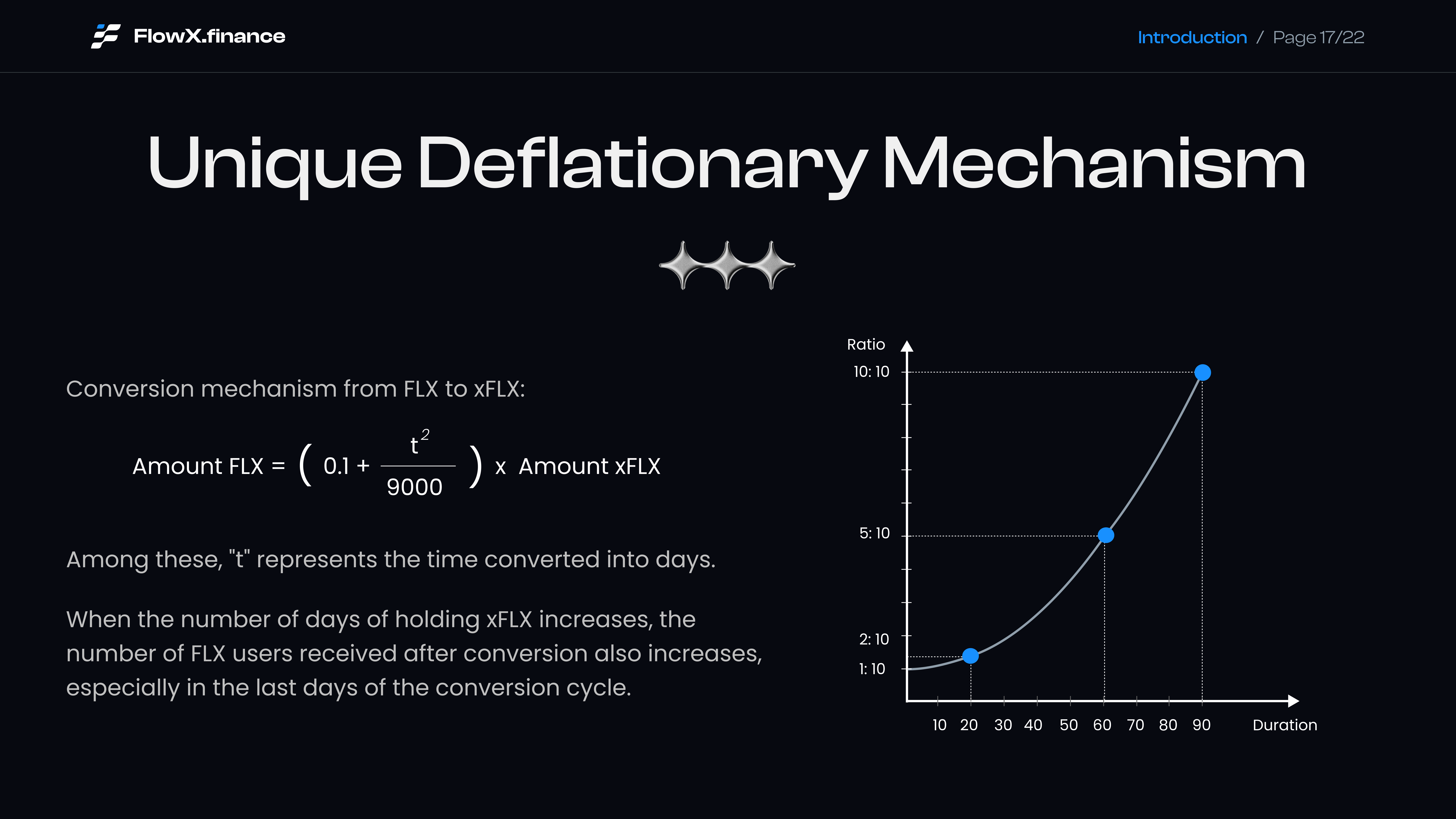 The longer the conversion time, up to 90 days, the higher the conversion ratio from xFLX to FLX will be at 1:1.&#x20;